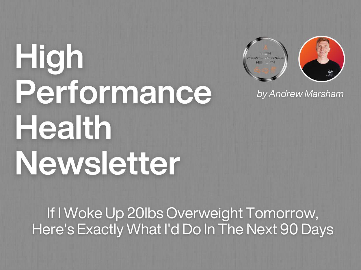 Here's what you can expect today If I Woke Up 20lbs Overweight Tomorrow, Here's Exactly What I'd Do In The Next 90 Days How to live longer than 99% of people 3 things to cut out if you want to lose more fat & have more energy Read time : 3 minutes Want to lose 20lbs of stubborn belly fat in the next 90 days? Here's everything you need if you're a busy executive. We've coached nearly 2,000 executives in 8 years through my company. This system works because it's built for your schedule. No...